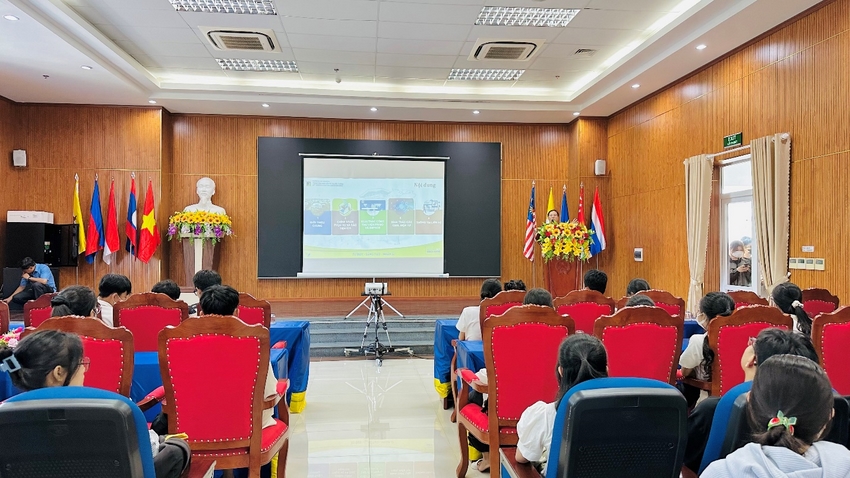 Tân sinh viên được giới thiệu về các quy định mượn tài liệu và tra cứu tài liệu trực tuyến tại Trung tâm Học liệu và Truyền thông