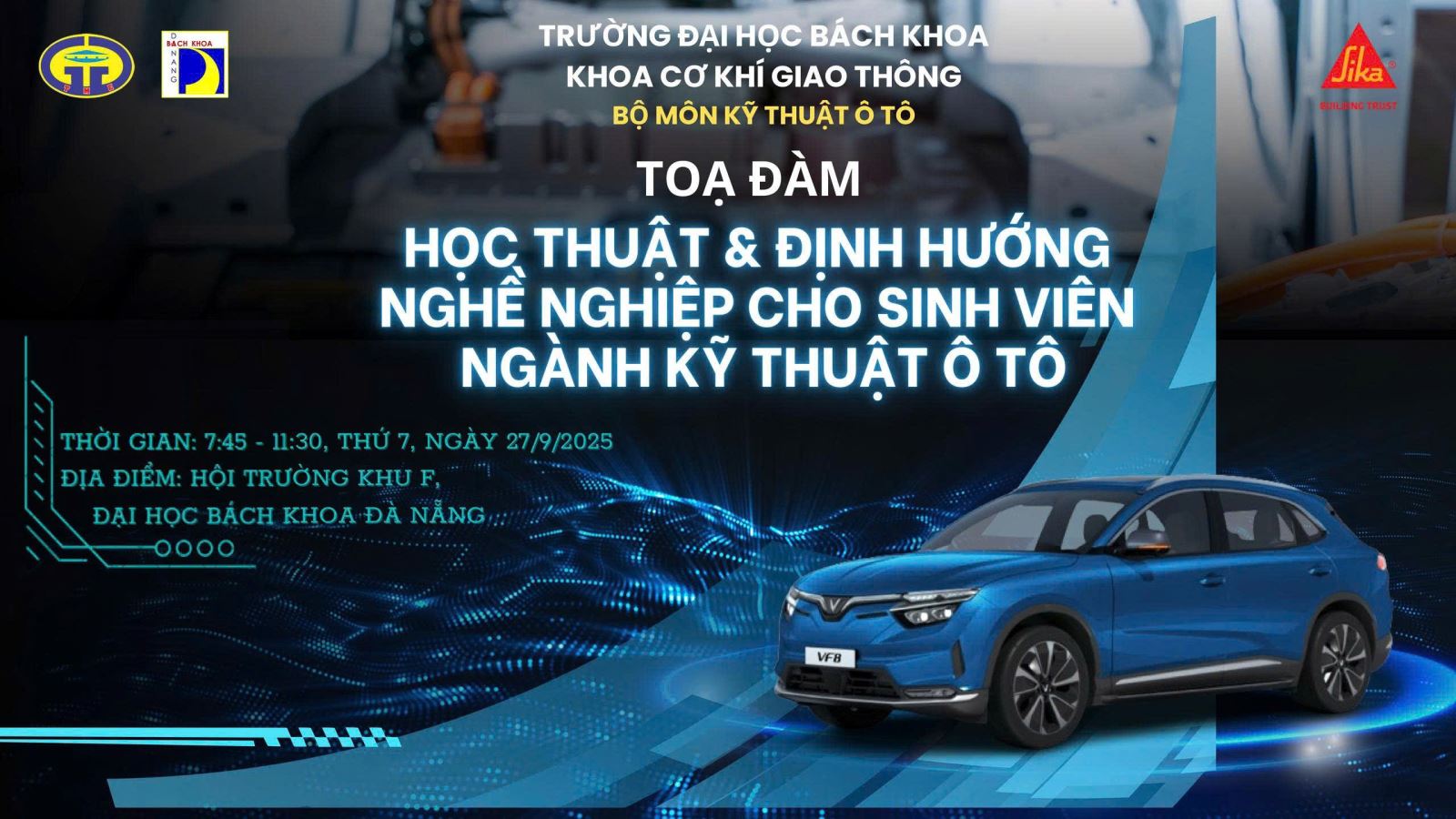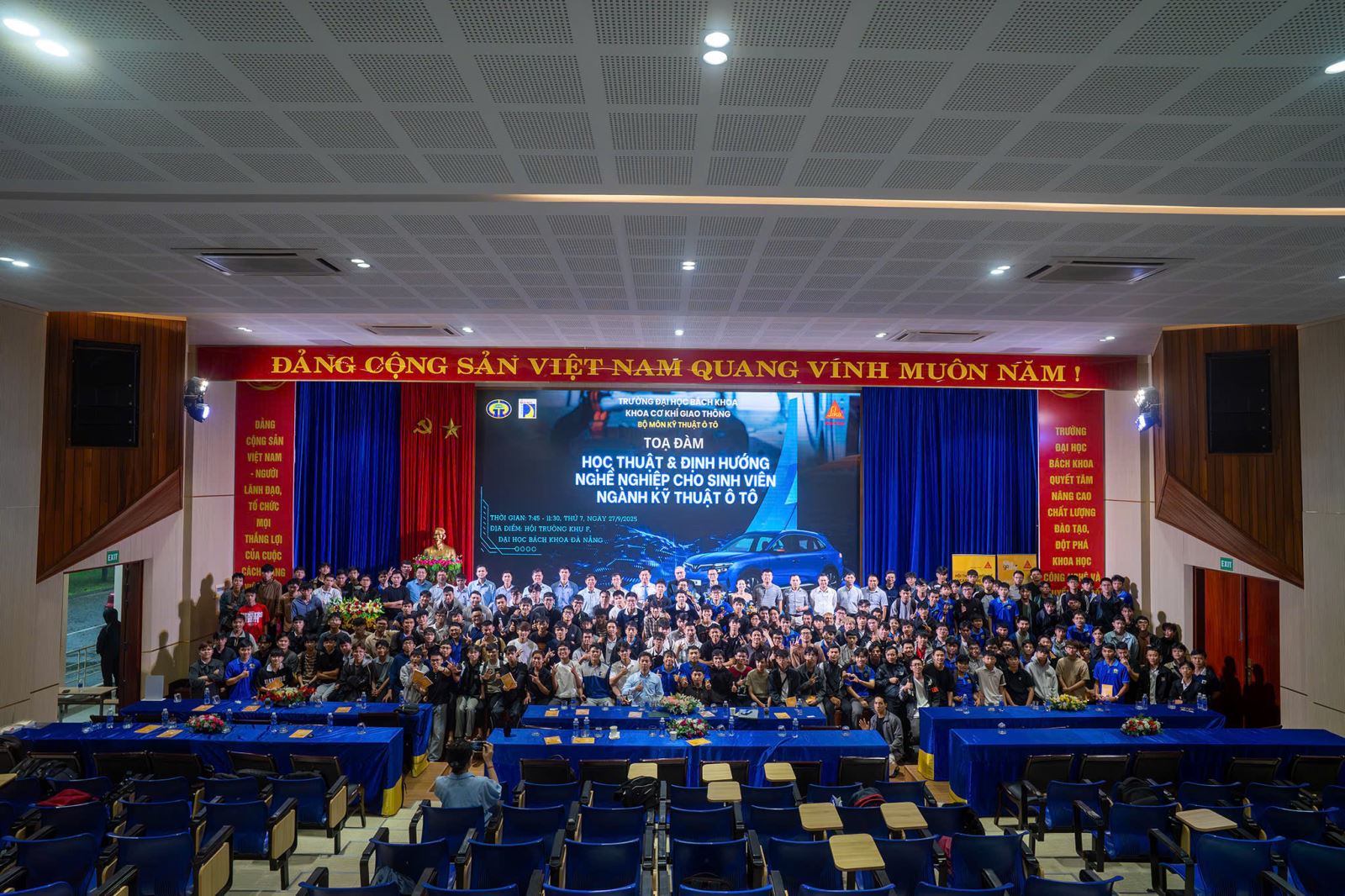Sáng 27/09/2025, tại Hội trường khu F – ĐH Bách khoa, ĐH Đà Nẵng, hơn 400 sinh viên ngành Kỹ thuật Ô tô đã tham dự buổi tọa đàm học thuật & định hướng nghề nghiệp do Bộ môn Kỹ thuật Ô tô, Khoa Cơ khí Giao thông, Trường Đại học Bách khoa - Đại học Đà Nẵng tổ chức.