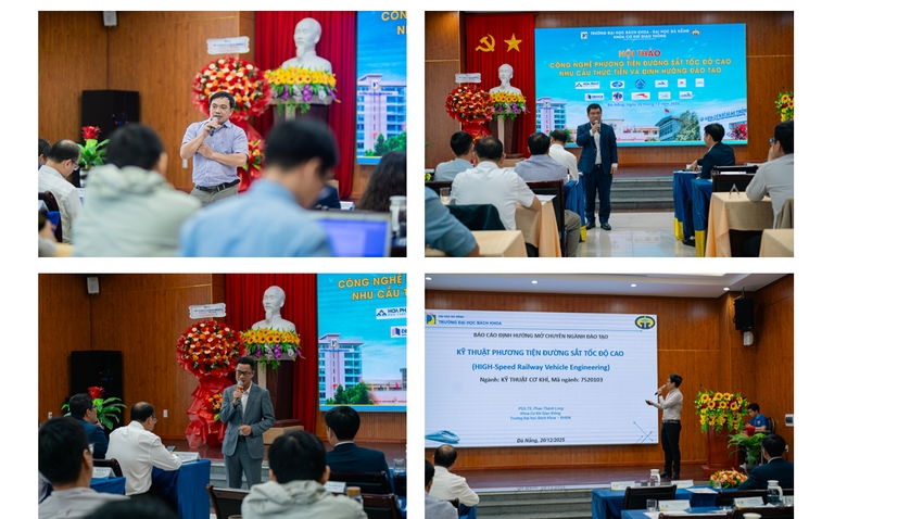 Sáng ngày 20/12/2025, tại Trường Đại học Bách khoa, Đại học Đà Nẵng (ĐHĐN), Khoa Cơ khí Giao thông đã tổ chức thành công Hội thảo: “Công nghệ Phương tiện Đường sắt tốc độ cao: Nhu cầu thực tiễn và Định hướng đào tạo”. Sự kiện thu hút sự quan tâm đặc biệt từ các cấp quản lý và cộng đồng doanh nghiệp lớn trong lĩnh vực phương tiện và hạ tầng giao thông.