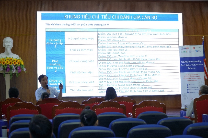 Bà Nguyễn Thị Mai Phương - Phó Giám đốc dự án USAID PHER chia sẻ: Trong khoảng một đến hai năm tới, dự án mong muốn hỗ trợ cho các Thầy, Cô của các trường đại học trong việc xây dựng hệ thống KPI đánh giá CBVC, hệ thống quản lý thông tin (MIS) cũng như là hệ thống quản lý chất lượng bên trong (IQA). Đối với việc áp dụng chỉ số đánh giá KPI sẽ góp phần nâng cao công tác quản trị của Nhà trường, phân bổ thu nhập hợp lý cho toàn thể CBVC, tạo động lực phấn đấu cho CBVC, giữ chân người tài.