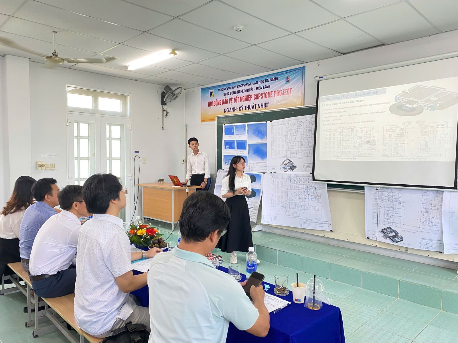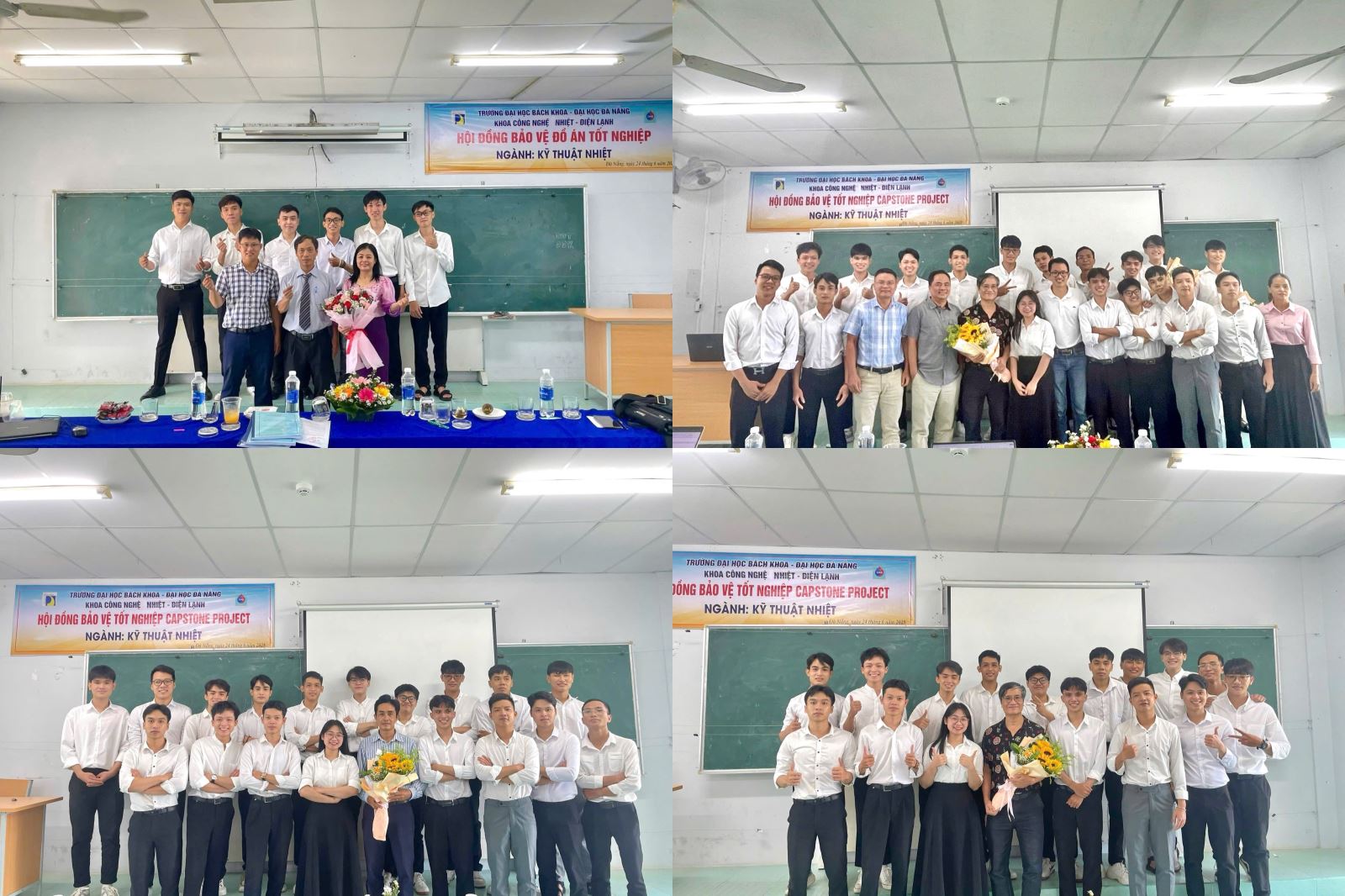 Sáng ngày 24/6/2025, tại Trường Đại học Bách khoa – Đại học Đà Nẵng đã diễn ra buổi lễ bảo vệ đồ án tốt nghiệp Capstone Project của các sinh viên khóa 2020, Khoa Công nghệ Nhiệt – Điện lạnh. Đây là sự kiện có ý nghĩa quan trọng, là cột mốc đánh dấu bước ngoặt lớn, phản ánh thành quả của cả quá trình nghiên cứu và học tập của sinh viên. Đồng thời, sự kiện cũng khẳng định chất lượng đào tạo, uy tín của đội ngũ giảng viên khoa cũng như vị thế của Khoa trong Nhà trường.