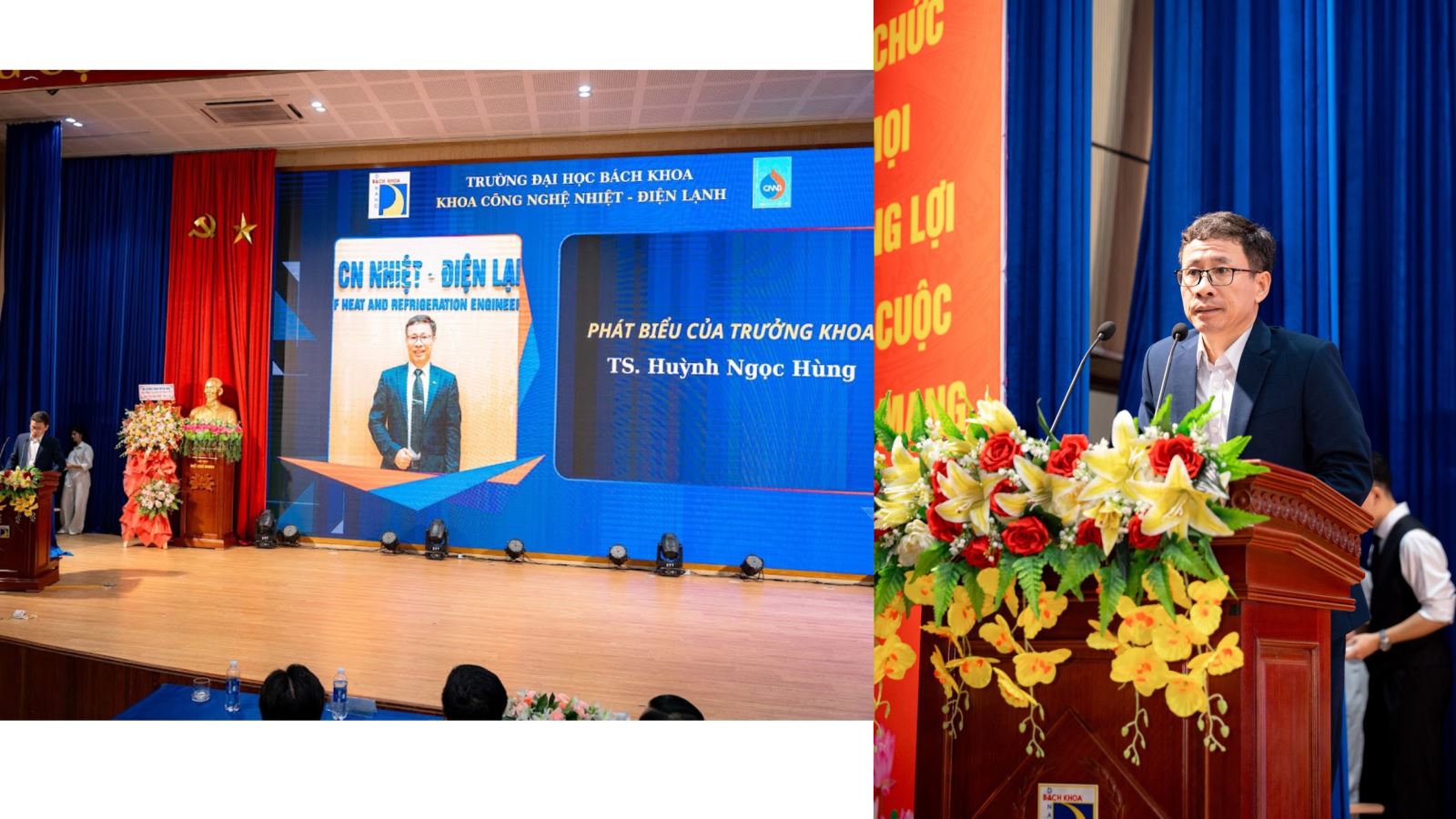 Mở đầu chương trình, TS. Huỳnh Ngọc Hùng - Trưởng khoa khoa Công nghệ Nhiệt - Điện lạnh đã đại diện Ban lãnh đạo khoa đã gửi lời chào và lời chúc mừng đến toàn thể các tân sinh viên khóa 2025 các ngành của khoa, cũng như gửi đến các thầy cô cùng các sinh viên có một năm học tập và công tác thật thành công. Bên cạnh đó, các vấn đề cần lưu tâm trong quá trình học tập và rèn luyện cũng được thầy đề cập.