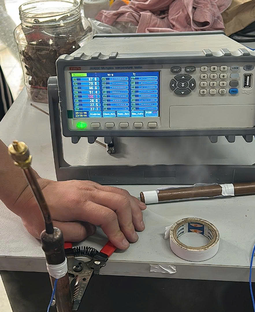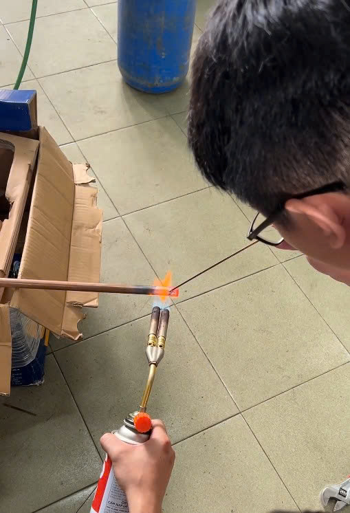 Sau các buổi báo cáo trình bày kết quả thiết kế và bản vẽ chế tạo, các nhóm đã phối hợp với thầy ThS. Nguyễn Đức Minh (Giảng viên thực hành) để tiến hành chế tạo ống nhiệt đúng thiết kế, kỹ thuật và yêu cầu về an toàn. Dưới đây là những hình ảnh thực tế chế tạo và đo đạc ống nhiệt tại phòng thí nghiệm khoa: