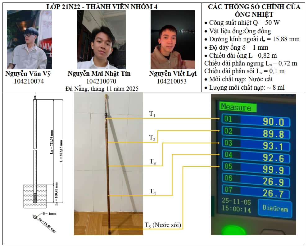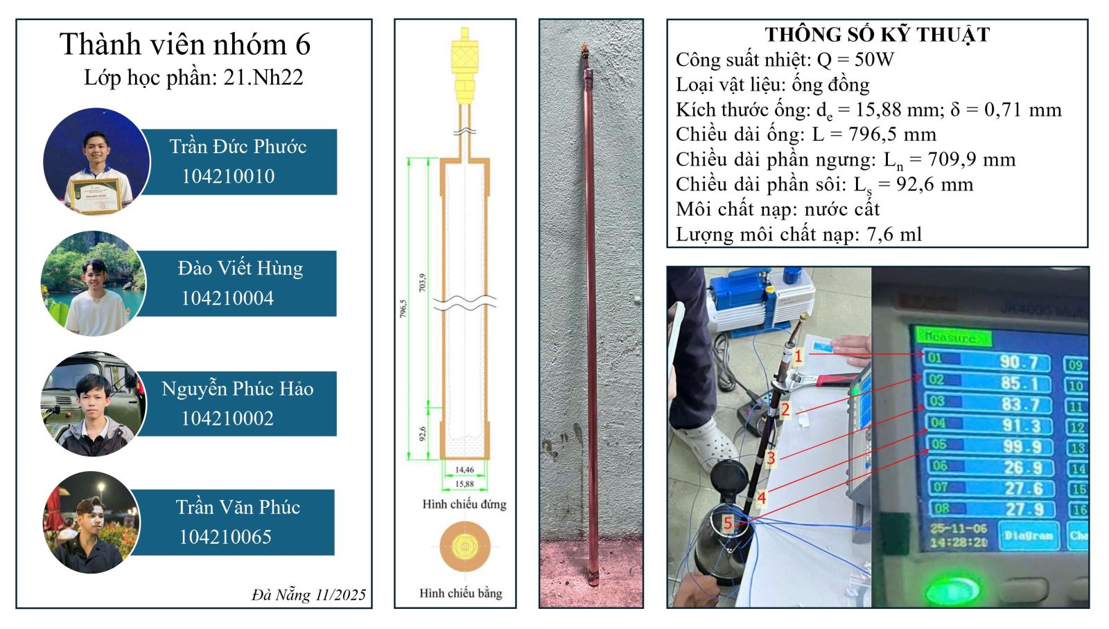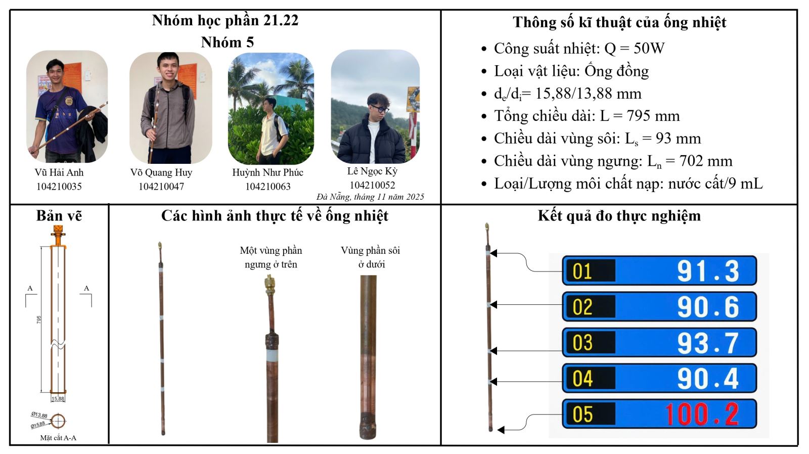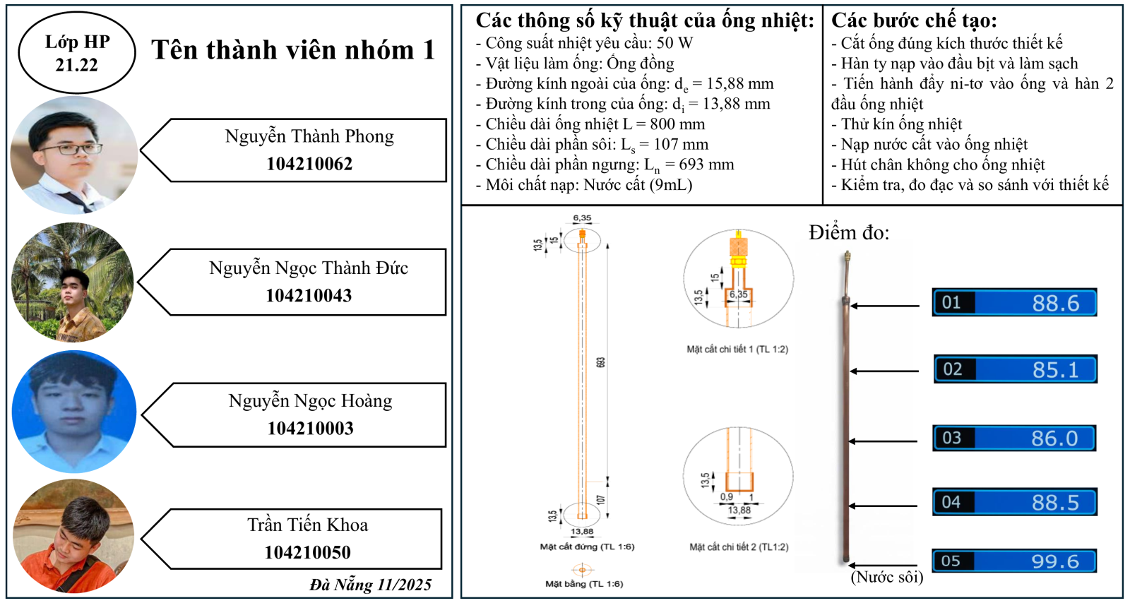 Trong khuôn khổ học phần Ống Nhiệt và ứng dụng tại khoa công Nghệ Nhiệt - Điện lạnh, những sinh viên thuộc khóa 21 của khoa đã tiếp nhận nhiệm vụ được giao của giảng viên TS. Ngô Phi Mạnh về việc tính toán thiết kế, chế tạo và thực nghiệm 1 ống nhiệt có các thông số yêu cầu sau:
