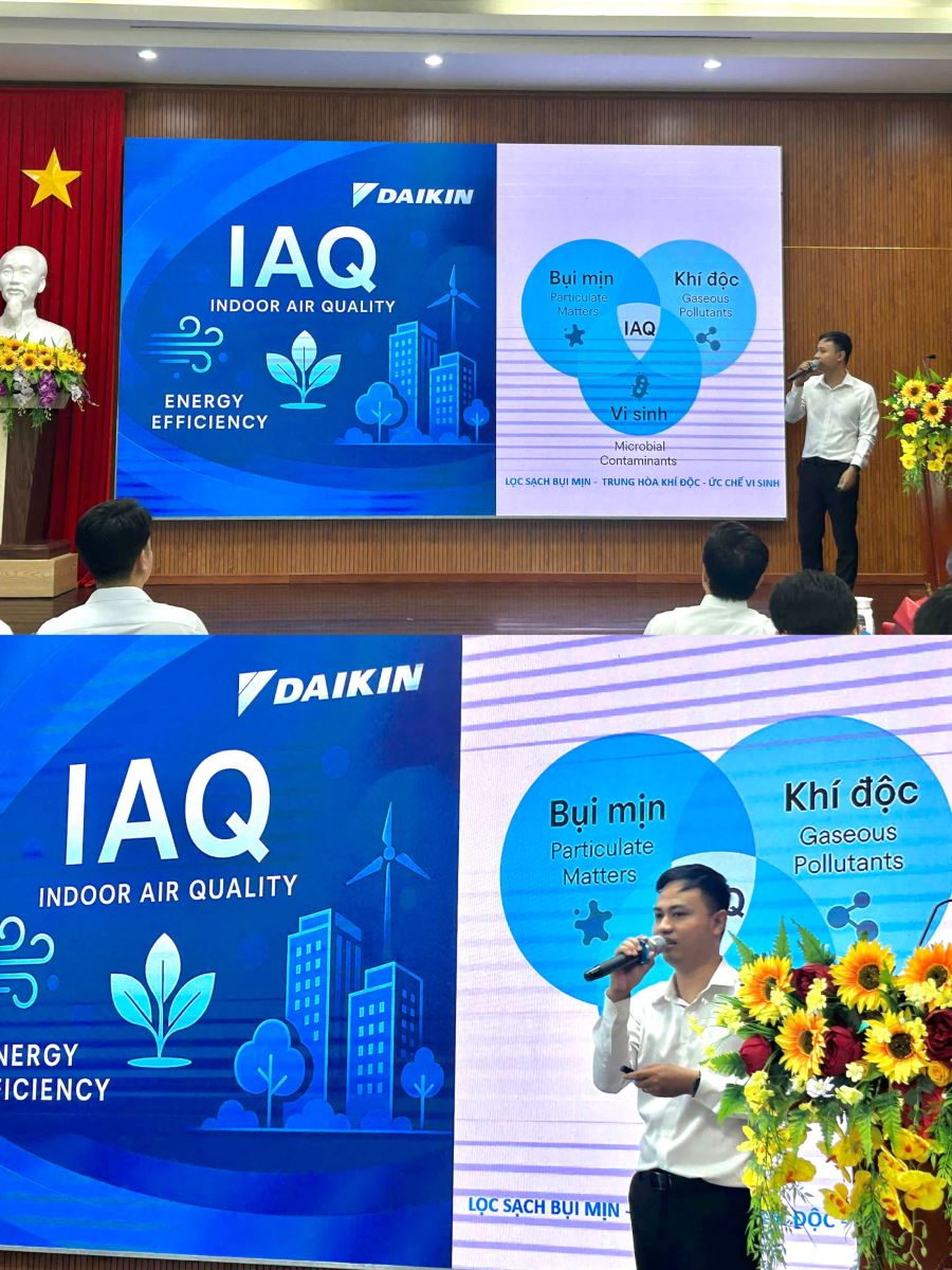 Tại hội thảo, Daikin Việt Nam đã giới thiệu chương trình Daikin NextGen, tập trung vào đào tạo, hỗ trợ sinh viên kỹ thuật tiếp cận sớm với công nghệ mới và môi trường làm việc thực tế trong doanh nghiệp.