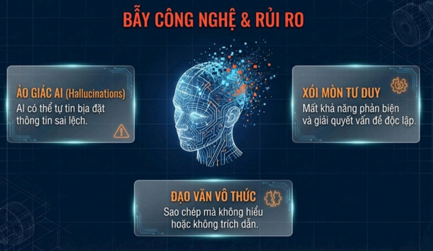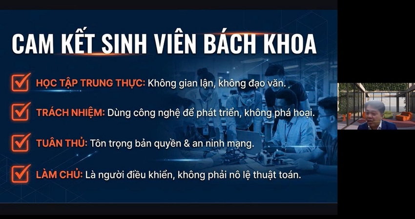 Đặc biệt, chuyên đề về ứng dụng AI đã thu hút sự quan tâm lớn của sinh viên. Diễn giả đã giới thiệu cách sử dụng các công cụ AI như một trợ lý học tập thông minh: tìm kiếm tài liệu, tóm tắt nội dung, gợi ý ý tưởng, lập kế hoạch học tập và phân tích dữ liệu. Tuy nhiên, thầy cũng lưu ý sinh viên cần sử dụng AI một cách có trách nhiệm, không lạm dụng, không thay thế tư duy cá nhân và tuyệt đối tuân thủ quy định về liêm chính học thuật.