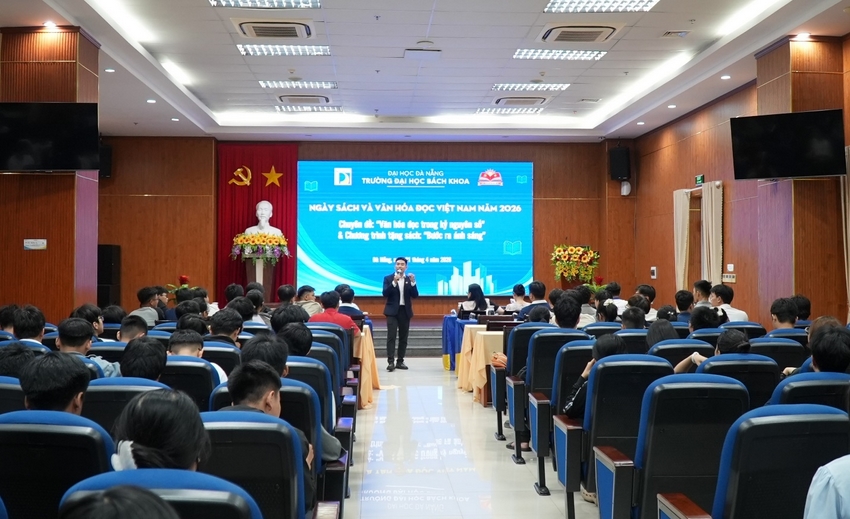 Tối ngày 21/4/2026, trong khuôn khổ chuỗi hoạt động hưởng ứng Ngày Sách và Văn hoá đọc Việt Nam, Trường Đại học Bách khoa, Đại học Đà Nẵng đã tổ chức chuyên đề “Văn hoá đọc trong kỷ nguyên số”, thu hút đông đảo sinh viên tham gia. Chương trình đã mở ra một không gian đối thoại sôi nổi, nơi người học không chỉ tiếp nhận thông tin mà còn trực tiếp chia sẻ, trao đổi và phản biện.