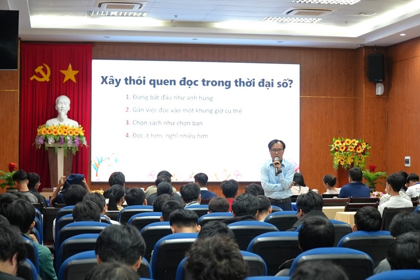 Từ góc nhìn đó, ThS. Nguyễn Tiến Danh đã đưa ra nhiều gợi ý thiết thực nhằm giúp sinh viên hình thành và duy trì thói quen đọc hiệu quả trong thời đại số. Việc đọc không cần bắt đầu từ những mục tiêu lớn lao, mà có thể khởi đầu từ những bước nhỏ, duy trì đều đặn theo một khung giờ cố định, lựa chọn sách phù hợp với bản thân, đọc ít nhưng suy ngẫm sâu, đồng thời sử dụng công nghệ một cách chủ động thay vì lệ thuộc.