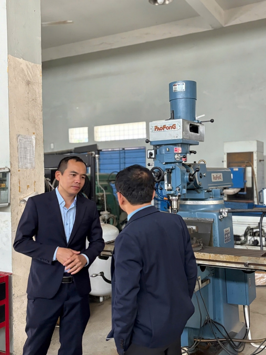 Lãnh đạo Công ty TNHH SX&TM Quân Đạt tham quan Phòng thí nghiệm của Khoa Cơ khí