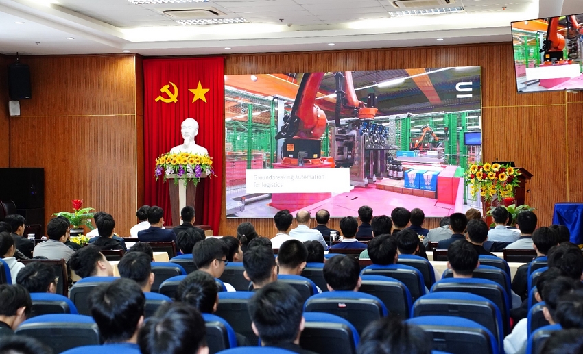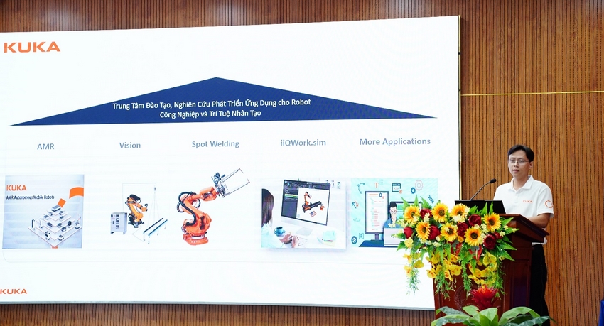 Anh Nguyễn Văn Tài - Kỹ sư giải pháp KUKA, Cựu sinh viên Trường Đại học Bách khoa giới thiệu về công nghệ và chương trình hợp tác của KUKA