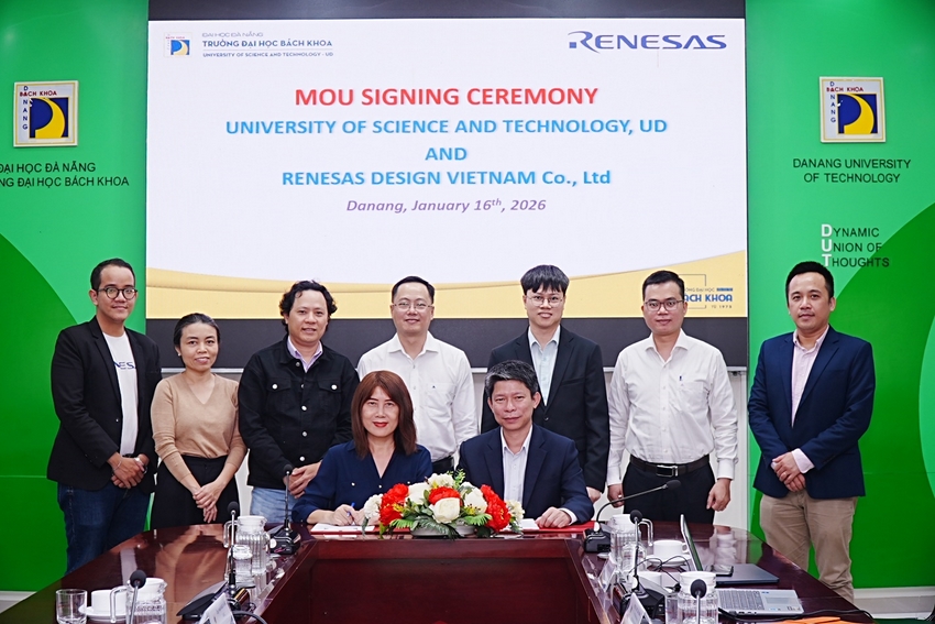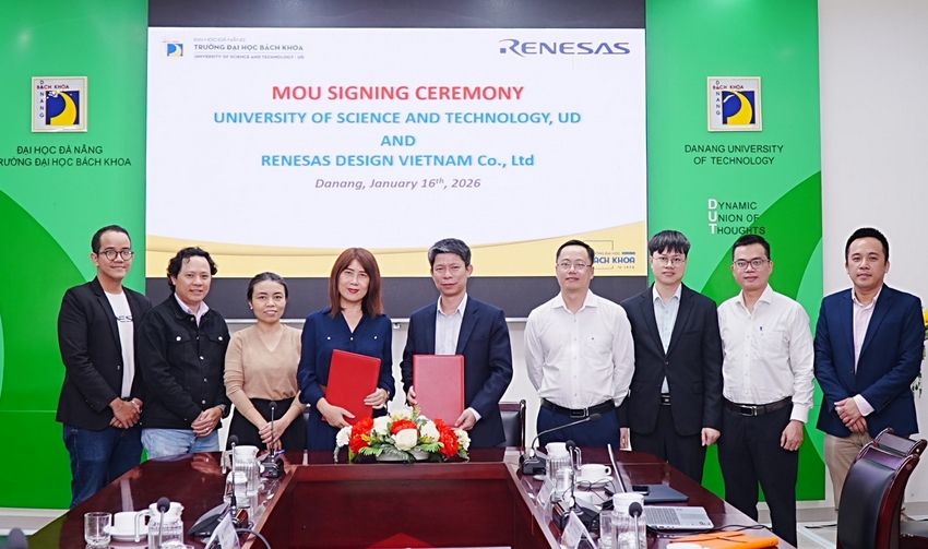 Chiều ngày 16/01/2026, tại Trường Đại học Bách khoa, Đại học Đà Nẵng (ĐHĐN) đã long trọng diễn ra Lễ ký kết Biên bản ghi nhớ (MOU) tham gia Mạng lưới Trí tuệ nhân tạo và Công nghiệp bán dẫn khu vực miền Trung giữa Trường Đại học Bách khoa, ĐHĐN và Công ty TNHH Renesas. Sự kiện góp phần mở rộng mạng lưới hợp tác giữa cơ sở đào tạo và doanh nghiệp trong lĩnh vực công nghệ cao, thúc đẩy phát triển nguồn nhân lực chất lượng cao về trí tuệ nhân tạo và vi mạch bán dẫn.