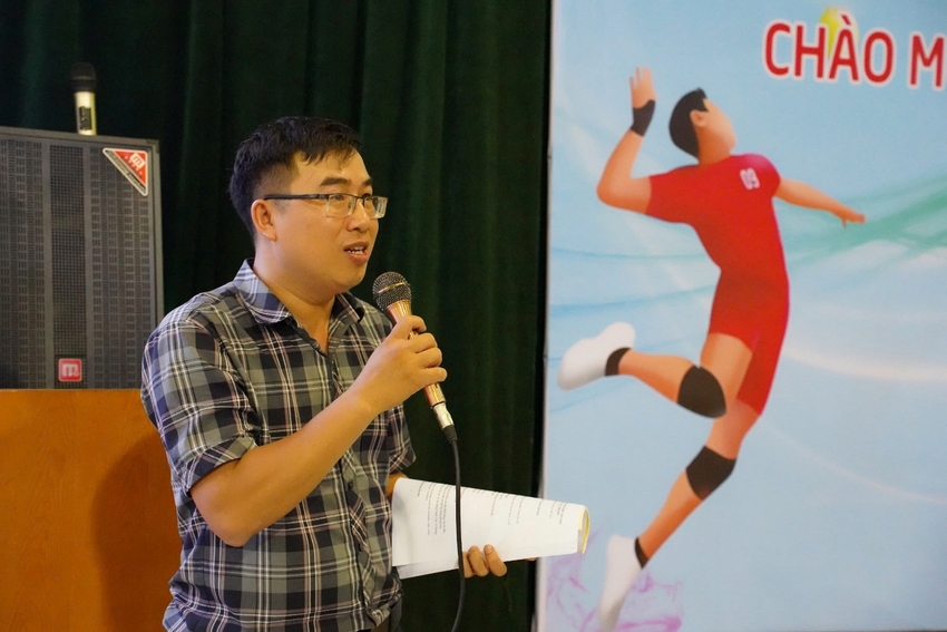 ThS. Nguyễn Anh Tuấn - Phó Chủ tịch Công đoàn trường phổ biến thể lệ giải đấu