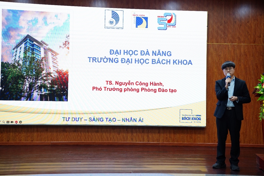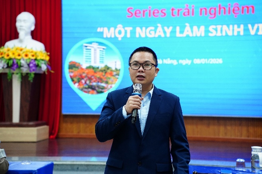 Mở đầu chương trình, các em học sinh đã có cơ hội gặp gỡ và lắng nghe những chia sẻ bổ ích từ TS. Nguyễn Văn Triều - Giám đốc Trung tâm Học liệu và Truyền thông, qua đó giúp các em có cái nhìn tổng quan về môi trường học tập, nghiên cứu cũng như bề dày truyền thống đào tạo của Trường Đại học Bách khoa, ĐHĐN. Thầy cho biết, Nhà trường hiện đang có 41 chương trình đào tạo thuộc các lĩnh vực khoa học, công nghệ và kỹ thuật. Trên cơ sở gắn kết chặt chẽ với nhu cầu thực tiễn của xã hội, hằng năm Nhà trường không ngừng cập nhật, cải tiến và mở mới các chương trình đào tạo nhằm đáp ứng xu thế phát triển hiện đại và yêu cầu của kỷ nguyên công nghiệp 4.0.