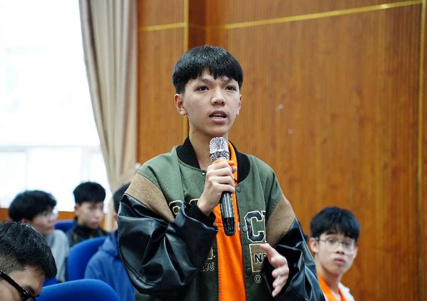 Tiếp nối chương trình, TS. Nguyễn Công Hành - Phó Trưởng phòng, Phòng Đào tạo đã giới thiệu tổng quan về các chương trình đào tạo, thông tin tuyển sinh, phương thức xét tuyển, các ngành học cũng như cơ hội nghề nghiệp trong tương lai. Những thắc mắc của học sinh về định hướng ngành nghề, môi trường học tập đều được giải đáp tận tình, giúp các em hiểu rõ hơn những thông tin về tuyển sinh của Nhà trường.