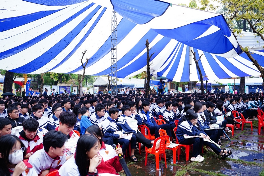 PGS.TS Lê Tiến Dũng - Phó Hiệu trường Nhà trường trực tiếp giải đáp thắc mắc của học sinh tại Ngày hội Tư vấn mùa thi năm 2026 do Báo Thanh Niên tổ chức