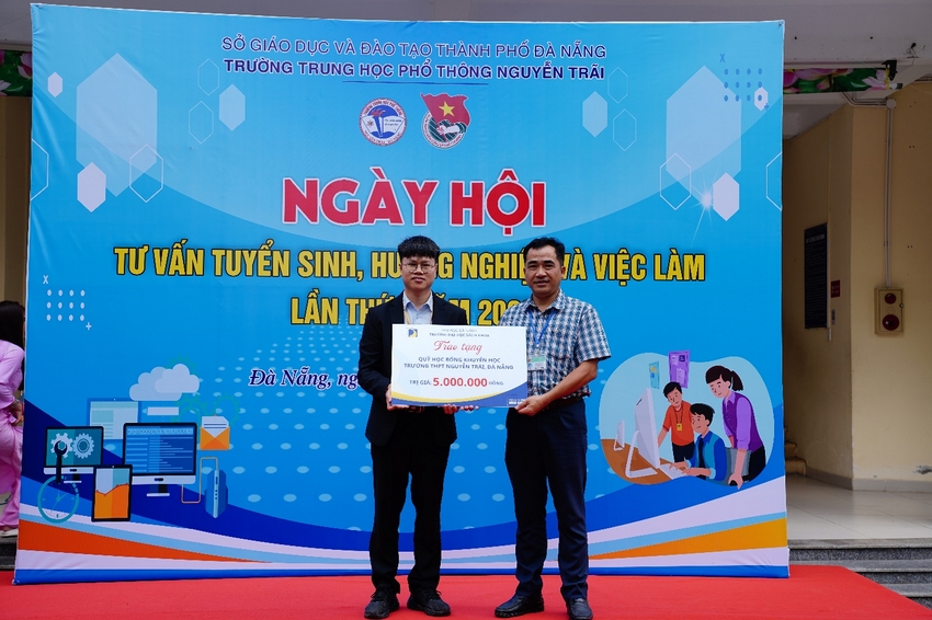 Nhân dịp này, Trường Đại học Bách khoa, ĐHĐN đã trao tặng quỹ học bổng trị giá 5.000.000 đồng đến Trường THPT Nguyễn Trãi nhằm khích lệ tinh thần học tập và tiếp thêm động lực cho học sinh trên con đường chinh phục tri thức.