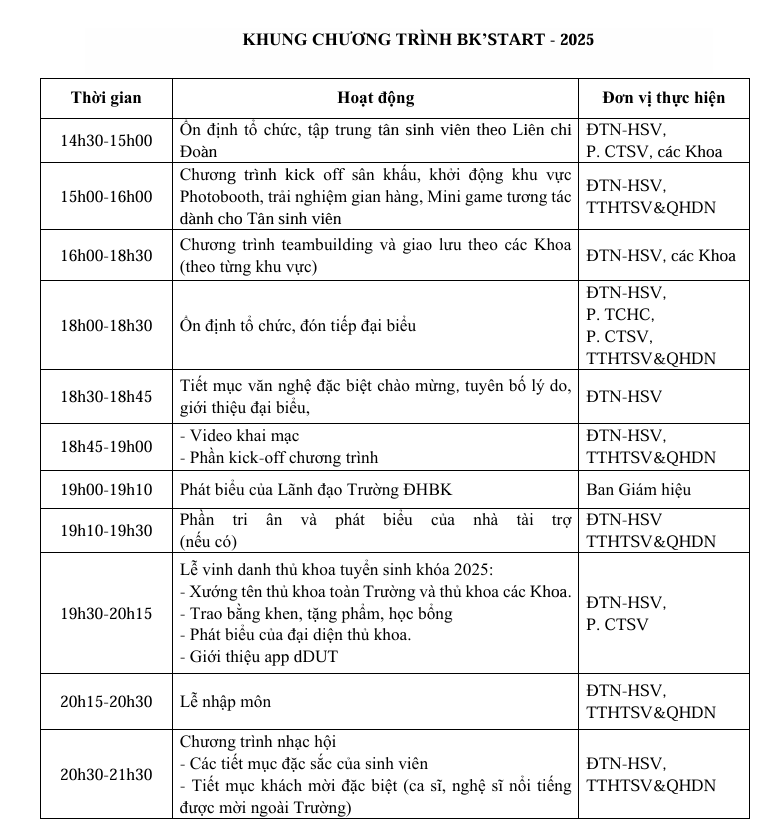 Địa điểm tập trung và chương trình BK Start 2025
