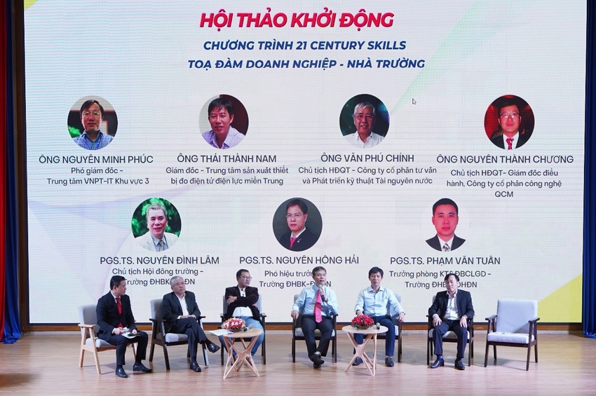Các khách mời tham gia toạ đàm doanh nghiệp – Nhà trường tại hội thảo khởi động