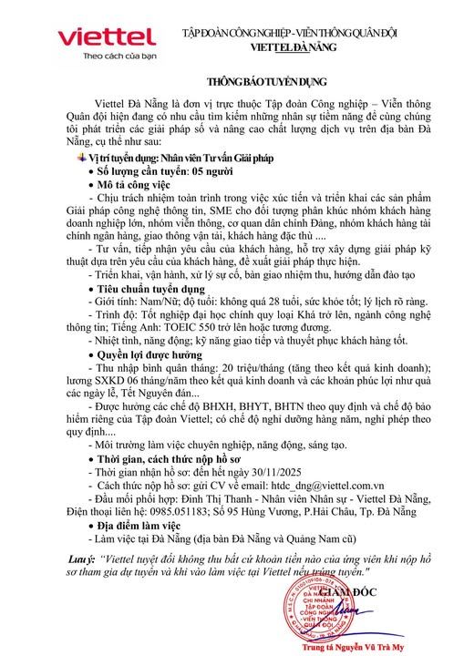 Thông báo tuyển dụng - Viettel Đà Nẵng