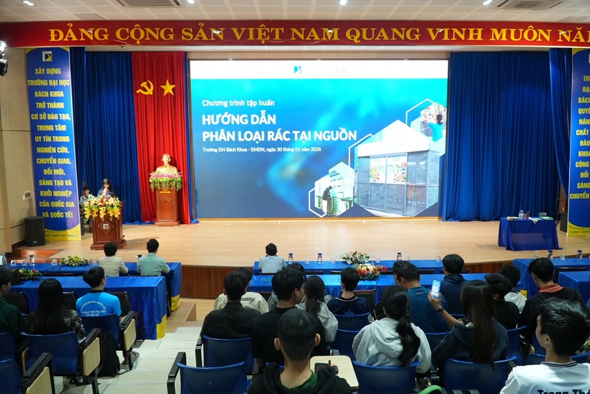Nhằm nâng cao nhận thức, hình thành thói quen phân loại rác tại nguồn và giảm thiểu phát sinh rác thải nhựa trong sinh viên; đồng thời thúc đẩy thực hành phân loại rác tại nguồn (PLRTN) và nâng cao tỷ lệ tái chế rác thải tại Trạm thu hồi rác thải tài nguyên (MRF), sáng ngày 30/01/2026, Trường Đại học Bách khoa, Đại học Đà Nẵng (ĐHĐN) đã phối hợp với Trung tâm Xây dựng và Thúc đẩy phát triển bền vững (BUS) tổ chức hoạt động tập huấn phân loại và tái chế rác thải nhựa ngay tại khuôn viên Nhà trường.