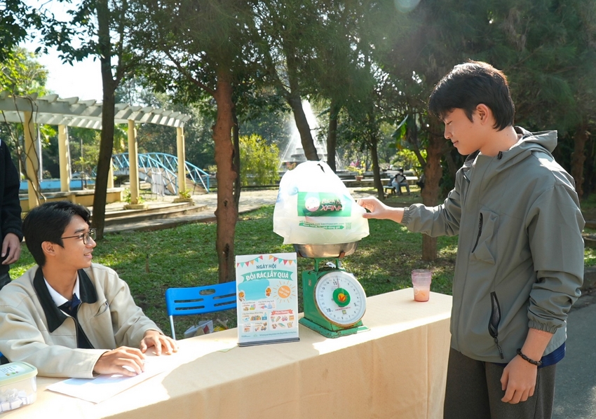 Song song với hoạt động tập huấn, chương trình Reborn Plastics cũng được tổ chức trong khuôn viên Nhà trường, thu hút sự quan tâm và tham gia sôi nổi của sinh viên thông qua các hoạt động như triển lãm tranh ảnh tuyên truyền về phân loại rác, hoạt động đổi rác lấy quà, góp phần lan tỏa thông điệp sống xanh và tái chế rác thải nhựa.