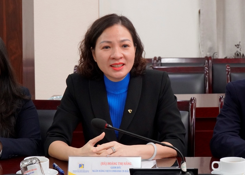Phát biểu tại buổi lễ, Bà Hoàng Thị Hằng - Giám đốc Ngân hàng Vietcombank CN Bắc Đà Nẵng đánh giá rất cao chất lượng đào tạo của Nhà trường trong các lĩnh vực mũi nhọn của đất nước. Chương trình trao học bổng là hoạt động An sinh xã hội thường niên của Vietcombank CN Bắc Đà Nẵng nhằm giúp đỡ các em sinh viên nỗ lực vươn lên trên con đường học tập, theo đuổi ước mơ đến trường. Thông qua hoạt động ý nghĩa này, Vietcombank CN Bắc Đà Nẵng mong muốn được chung tay cùng Nhà trường và xã hội tiếp thêm nghị lực, niềm tin cho các em sinh viên khó khăn để các em không ngừng nỗ lực vươn lên đạt kết quả cao trong học tập và đóng góp cho cộng đồng, xã hội.