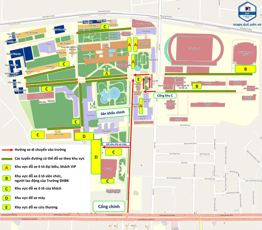 - Đỗ xe tại Trung tâm thể thao ĐHĐN (nếu các vị trí đỗ trong khuôn viên trường đã hết chỗ).