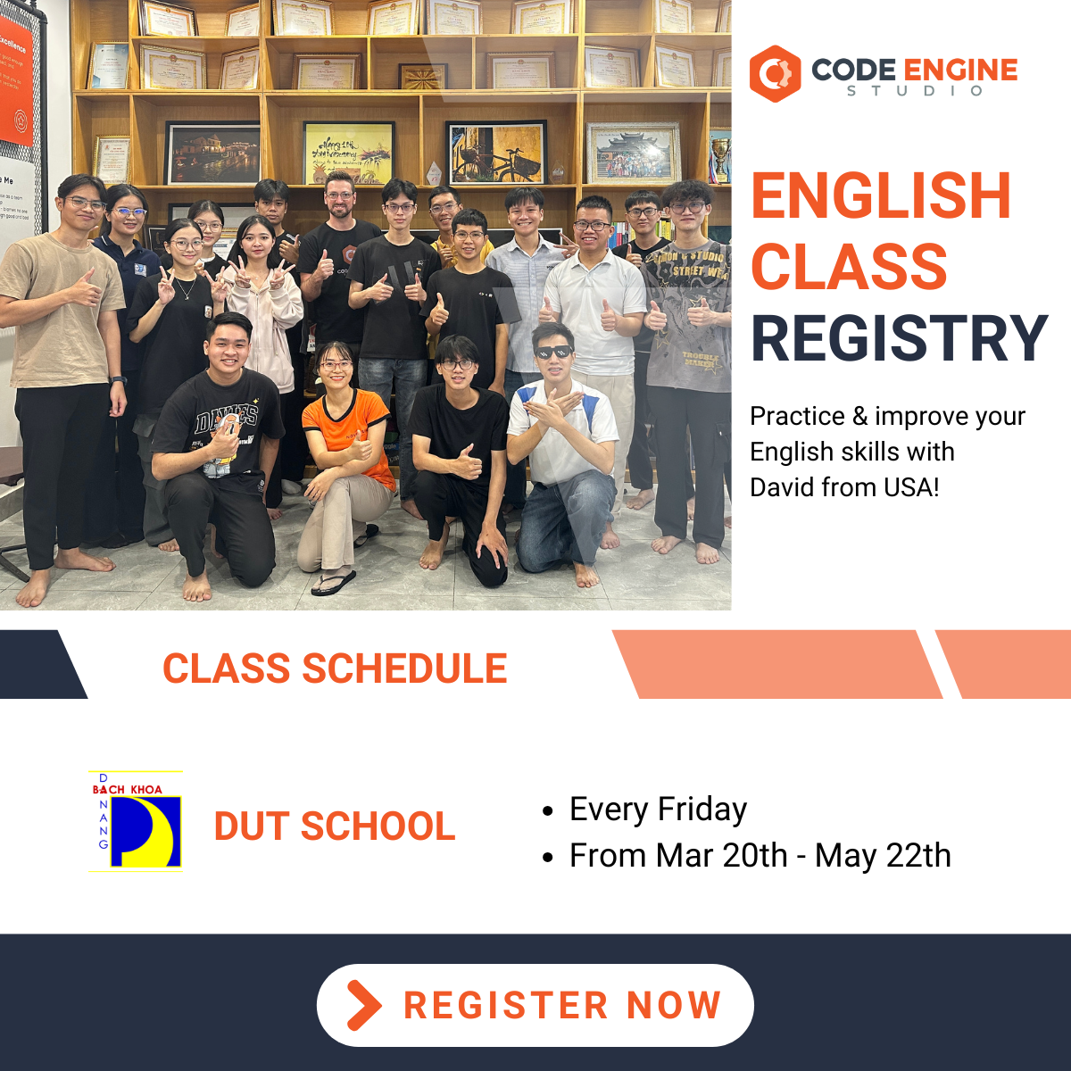 Lớp học Tiếng Anh miễn phí - Code Engine StudioNew