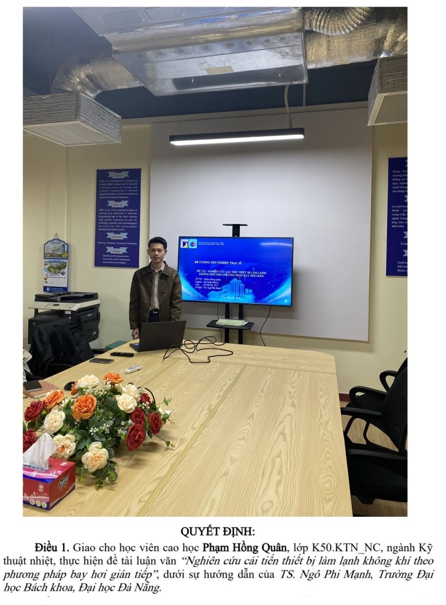 Vào lúc 9h ngày 8 tháng 2 năm 2026, tại VP khoa công nghệ Nhiệt - Điện lạnh (phòng A.205), trường Đại học Bách khoa, Đại học Đà Nẵng, Hội đồng khoa học khoa bao gồm: