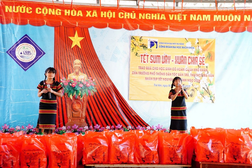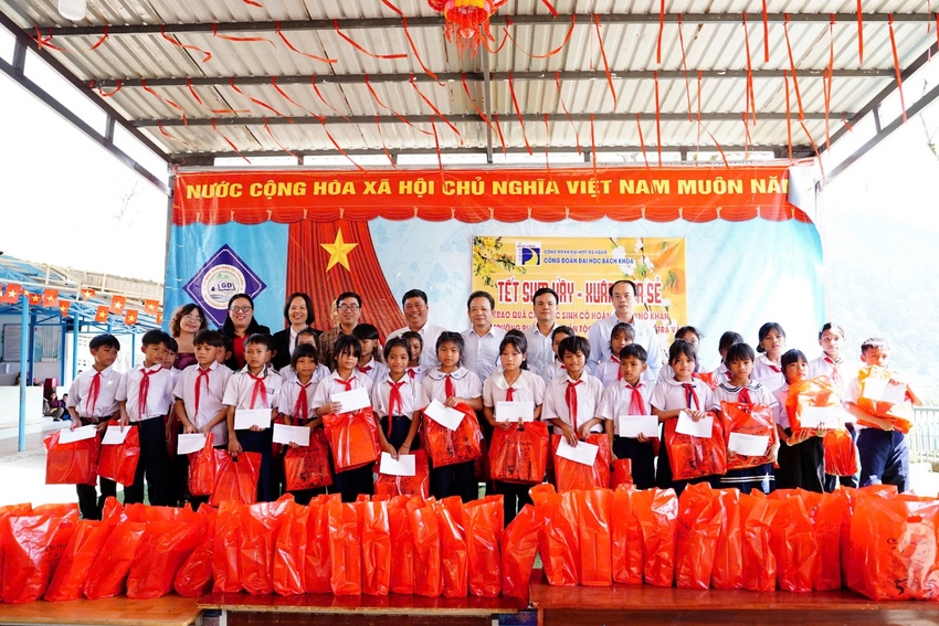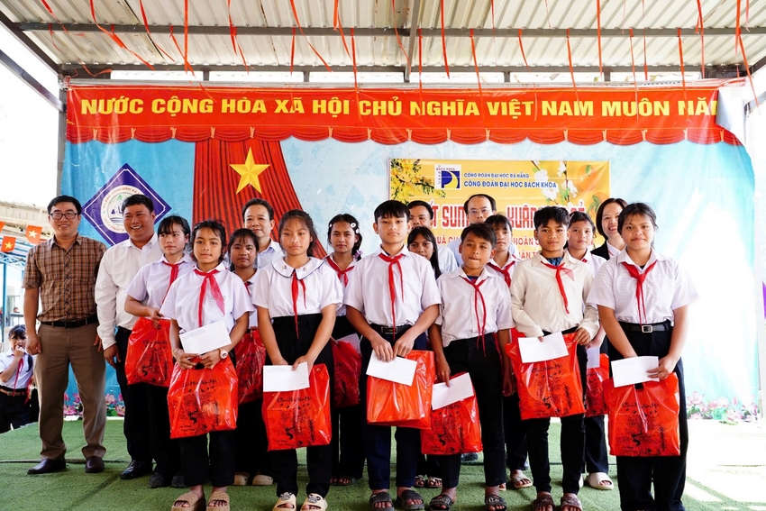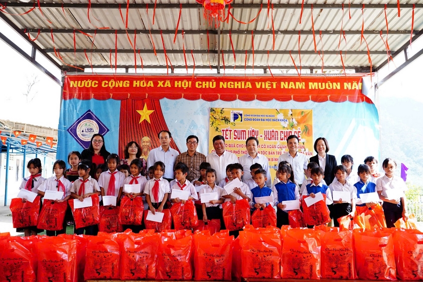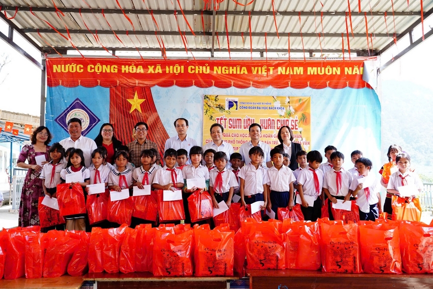 Ngày 06/02/2026, Công đoàn Trường Đại học Bách khoa, Đại học Đà Nẵng (ĐHĐN) đã tổ chức chương trình “Tết sum vầy - Xuân chia sẻ”, trao quà Tết đến các em học sinh có hoàn cảnh khó khăn tại Trường Phổ thông Dân tộc bán trú TH&THCS Trà Vân, thành phố Đà Nẵng. Đây là hoạt động thường niên giàu ý nghĩa nhân văn, góp phần mang đến một mùa xuân ấm áp, sẻ chia với những hoàn cảnh còn nhiều khó khăn.