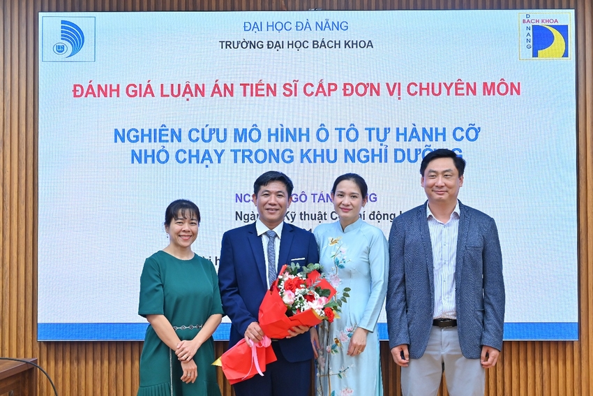 Sáng ngày 07/02/2026, Trường Đại học Bách khoa, Đại học Đà Nẵng (ĐHĐN) đã tổ chức buổi bảo vệ Luận án Tiến sĩ cấp đơn vị chuyên môn cho Nghiên cứu sinh (NCS) Ngô Tấn Thống với đề tài: “Nghiên cứu mô hình ô tô tự hành cỡ nhỏ chạy trong khu nghỉ dưỡng”. Luận án được thực hiện dưới sự hướng dẫn khoa học của PGS.TS Phạm Quốc Thái và PGS.TS Bùi Thị Minh Tú (Trường Đại học Bách khoa, ĐHĐN).